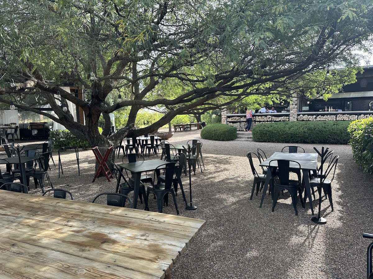 As you step into Barrica de Fuego, you are immediately enveloped by a grand ambiance, a harmonious blend of rustic charm and modern elegance. The outdoor seating area, shaded by the lush trees, offers a tranquil oasis, making it an ideal spot for a leisurely lunch or an intimate dinner.